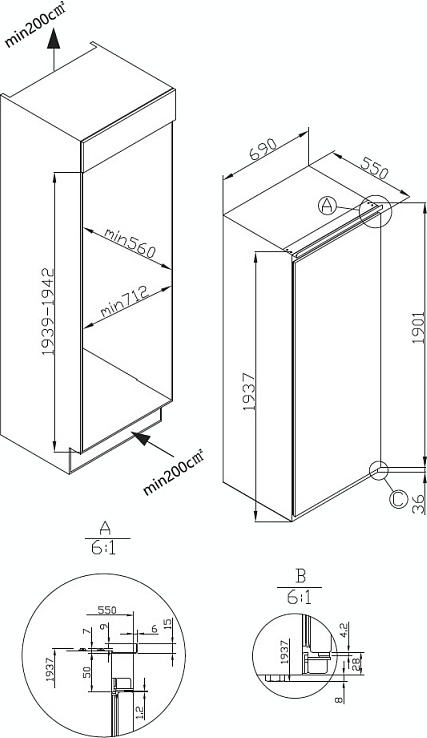 Встраиваемый прибор проще разместить в комнате, даже если общий метраж не такой уж большой. Вы можете спрятать его за декоративной панелью от мебельного фасада — советуем заранее определить нишу и заказывать панели исходя из типа крепления к двери. Способ монтажа в данной модели: скользящее крепление двери (система door sliding) Благодаря внушительным размерам, в частности высоте, она подходит большим пространствам — просторной кухне, еврогостиной. Вы можете поменять направление открывания двери, так как упор переставляемый и ее можно перевесить на другую сторону. Такая функция открывает больше возможностей для установки. Отдельную морозильную камеру чаще всего выбирают для частного дома или дачи, для производства, когда актуально хранение большого объема замороженных продуктов. Советуем обратить внимание на этот вариант. Количество камер: 1.