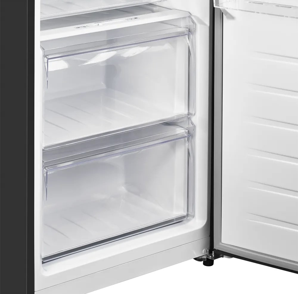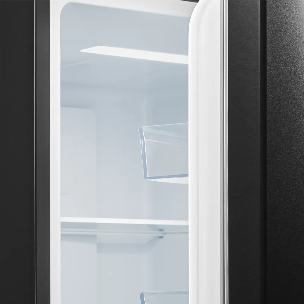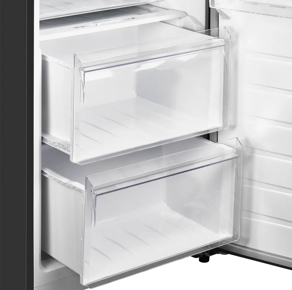 Kuppersberg NRS 189 DX — стильный встроенный в современный интерьер отдельно стоящий агрегат, представляющий собой холодильник без морозильной камеры с лаконичным черным фасадом и продуманной эргономикой. Его строгие линии и минималистичная панель управления с сенсорными кнопками и LED-дисплеем на дверце придают технике эстетичный, актуальный вид, подходящий для кухонь разного формата; корпус высотой 185 см, шириной 60 см и глубиной 65 см оптимально вписывается в стандартную нишу и обеспечивает вместительность без лишнего объема. Общий полезный объем 355 литров организован как единая камера с циркуляционной системой охлаждения и независимым компрессором, работающим на экологичном хладагенте R600a; система No Frost исключает образование инея и избавляет от необходимости ручного размораживания, а функция суперохлаждения позволяет быстро понизить температуру после загрузки продуктов, сохраняя текстуру и вкус. Внутреннее пространство оснащено четырьмя стеклянными полками, из которых три регулируются по высоте для гибкой расстановки емкостей и высоких предметов, а одна фиксирована для стабильности; дополнительно предусмотрены четыре секции на дверце и удобная подставка для яиц, что облегчает организацию и доступ к повседневным запасам. Зона свежести с двумя контейнерами создаёт оптимальные условия для хранения овощей и мяса, замедляя процессы старения продуктов и продлевая срок съедобности без понижения уровня влажности. Панель управления электронная, интуитивно понятная: сенсорные элементы аккуратно интегрированы в фасад, на дисплее отображаются настройки и индикации, включая световую и звуковую подсказку при открытой створке; предусмотрены режим «Отпуск» и защита от детей для спокойствия в длительном отсутствии и безопасности семьи. Эксплуатационные параметры соответствуют частым бытовым требованиям: климатический класс N‑SN‑ST обеспечивает стабильную работу в широком диапазоне температур, уровень шума 42 дБ делает устройство тихим соседем, а класс энергопотребления A+ помогает снизить расходы на электроэнергию при напряжении 220-240 В и частоте 50 Гц. Практичные детали включают возможность перевешивания двери, регулируемые ножки для ровной установки на неровной поверхности и светодиодную подсветку внутри камеры для равномерной обзорности даже при слабом освещении. Благодаря продуманной компоновке, современным системам контроля и функционалу, ориентированному на удобство использования и сохранность продуктов, этот прибор станет надежным центром хранения провизии в квартире или доме, гармонично сочетая привлекательный дизайн и техническую оснащенность для ежедневного комфорта. холодильники