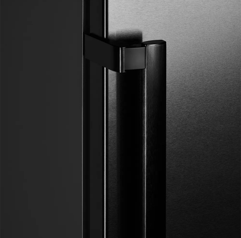 Последнее время достаточно широкое распространение получили холодильники черного цвета. Подобные устройства придают кухне особый стиль, однако не рекомендуется устанавливать их в небольшом помещении, особенно если фасад изготовлен не из стекла. Кроме того, черные холодильники требуют постоянного тщательного ухода, так как на них лучше заметны загрязнения.