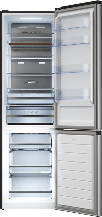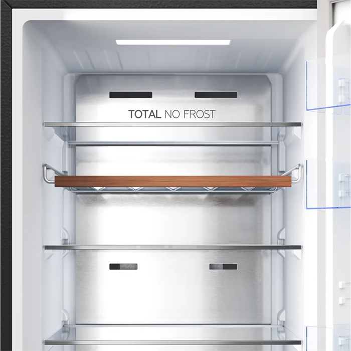 No Frost (Total No Frost, Frost Free): вентилятор обеспечивает циркуляцию охлажденного воздуха, благодаря чему лед не нарастает на стенке, а концентрируется только на скрытом внутри холодильника испарителе. Талая вода собирается в специальной емкости и испаряется. Такой холодильник не нужно размораживать – это экономит время и позволяет не останавливать прибор. Благодаря этим плюсам в современных моделях No Frost – самая распространенная система.