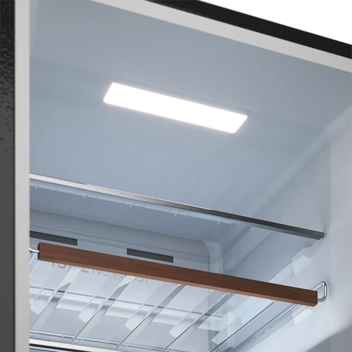 Внутреннее освещение холодильной камеры позволяет обеспечить хороший обзор содержимого и быстро найти необходимые продукты. Чем меньше времени будет открыта дверца холодильника, тем лучше будет поддерживаться в камере выбранная температура, следовательно, улучшится и качество хранения продуктов.
