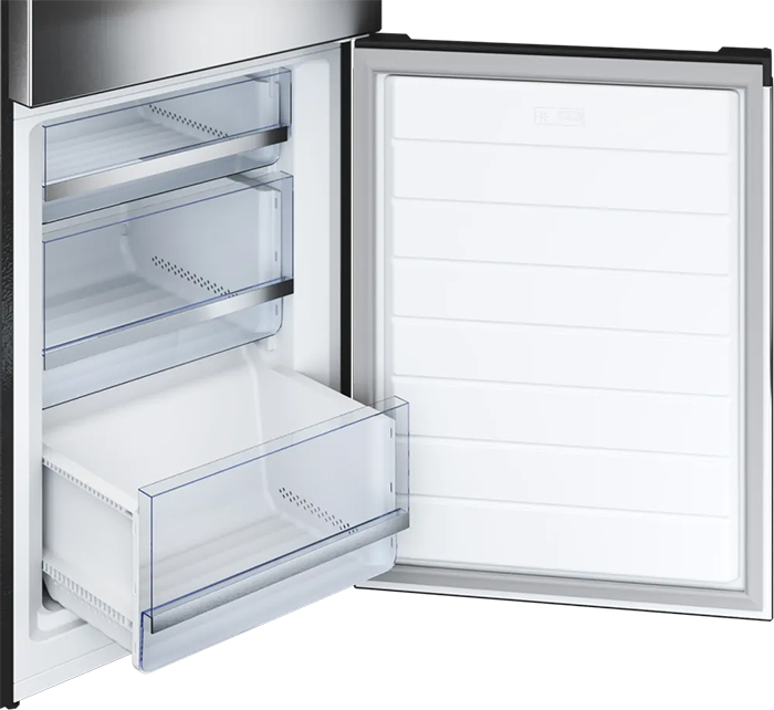 Трехкамерные модели выпускаются в нескольких вариантах. В некоторых случаях в качестве третьей камеры поступает так называемая зона свежести — отделение, где поддерживается температура около 0 градусов. В другом варианте подобные модели имеют морозильную камеру, состоящую из двух выдвижных ящиков.