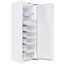 Встраиваемые холодильники монтируются в нишу или колонну. Передняя их часть закрывается декоративным мебельным фасадом и снаружи не отличается от дверцы обычного кухонного шкафа, так что их не нужно подбирать под интерьер помещения. Объем этих холодильников, как правило, несколько меньше, чем у отдельностоящих, так как при встраивании необходимо оставлять свободное пространство для вентиляции. Они отличаются меньшим уровнем шума, а также лучше держат холод и отличаются большей экономичностью из-за дополнительного слоя изоляции. Ассортимент этих холодильников не так велик, как у отдельно стоящих, установка более трудоемкая, а стоимость обычно несколько выше.