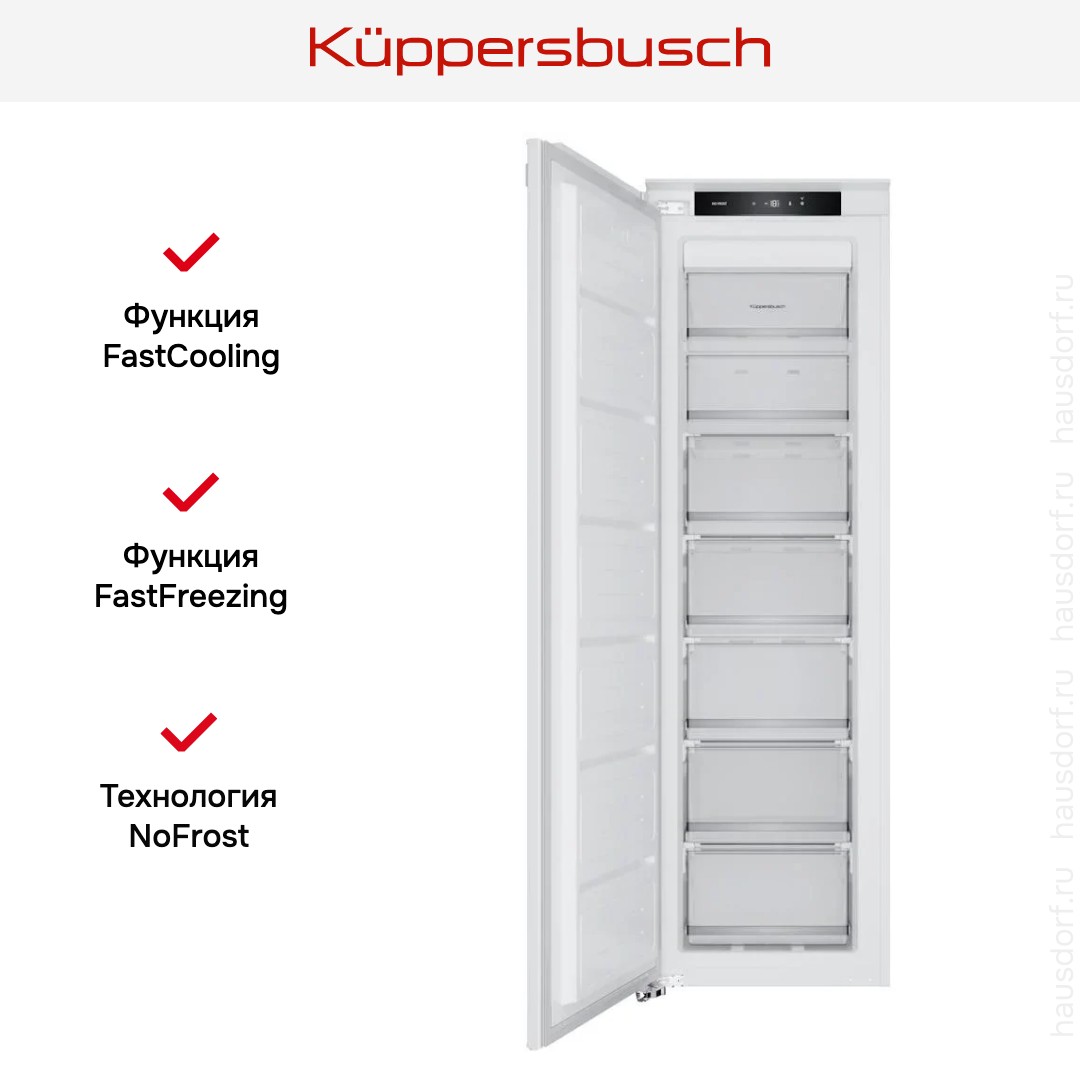 Встраиваемая морозильная камера Kuppersbusch FG 8550.0I — замечательный выбор для всех, кто нуждается в надежном и современном приборе, чтобы обустроить кухню по последнему слову техники.