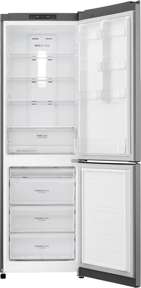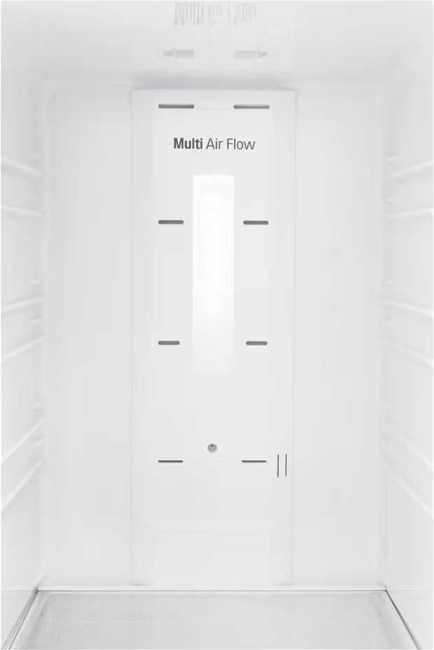 Специальная зона свежести предназначена для правильного и более длительного хранения овощей, фруктов, зелени. В ней поддерживается околонулевая температура, поэтому продукты не перемораживаются и не пересыхают. Система охлаждения этого холодильника — Multi-Airflow-System.