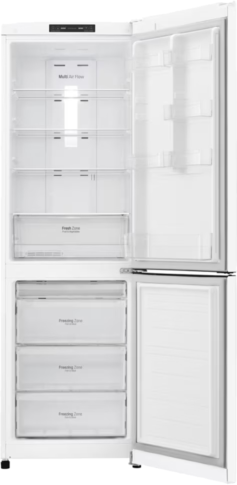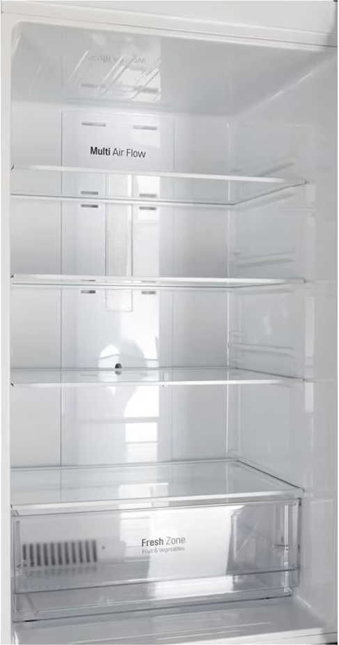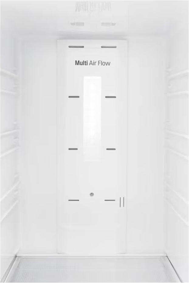 Специальная зона свежести предназначена для правильного и более длительного хранения овощей, фруктов, зелени. В ней поддерживается околонулевая температура, поэтому продукты не перемораживаются и не пересыхают. Система охлаждения этого холодильника — Multi-Airflow-System.