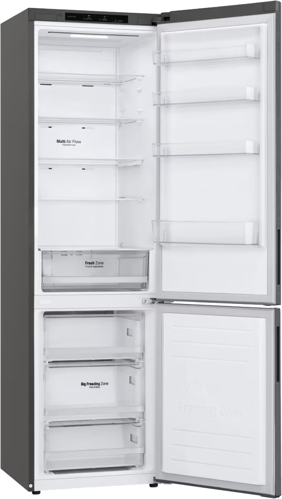 Инверторный компрессор повышает экономичность оборудования и продлевает ресурс работы, снижая энергопотребление. Хладагент R600a экологичен и эффективен, а система Multi-Airflow обеспечивает равномерное распределение холодного воздуха по полкам, предотвращая локальные перепады температур. Технология No Frost в обеих камерах исключает образование льда и избавляет от ручной разморозки. В случае отключения питания продукты сохранят холод до 16 часов.