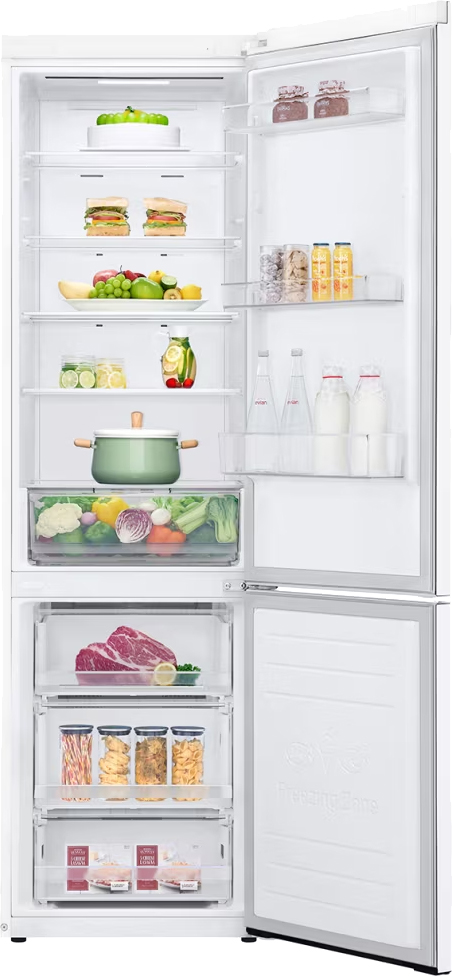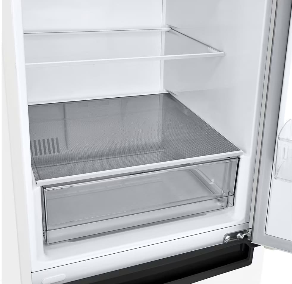 Холодильник LG GA-B509LQYL имеет строгий и современный образ с фронтом из металла белого цвета и скрытой ручкой. Габариты 203×59.5×68.2 см вписываются в большинство кухонных планировок, а возможность перевешивания дверей дает свободу при установке. Металлический корпус устойчив к механическим воздействиям, прочен и не требует сложного ухода. Антибактериальное покрытие предотвращает размножение микробов на поверхности.