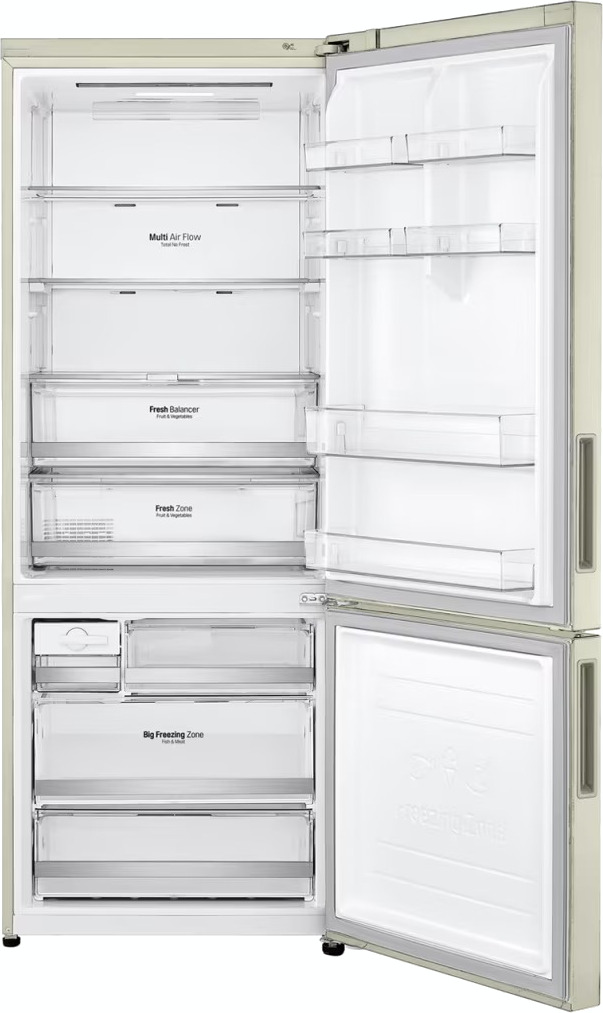 Специальная зона свежести предназначена для правильного и более длительного хранения овощей, фруктов, зелени. В ней поддерживается околонулевая температура, поэтому продукты не перемораживаются и не пересыхают. Система охлаждения этого холодильника — Multi-Airflow-System.