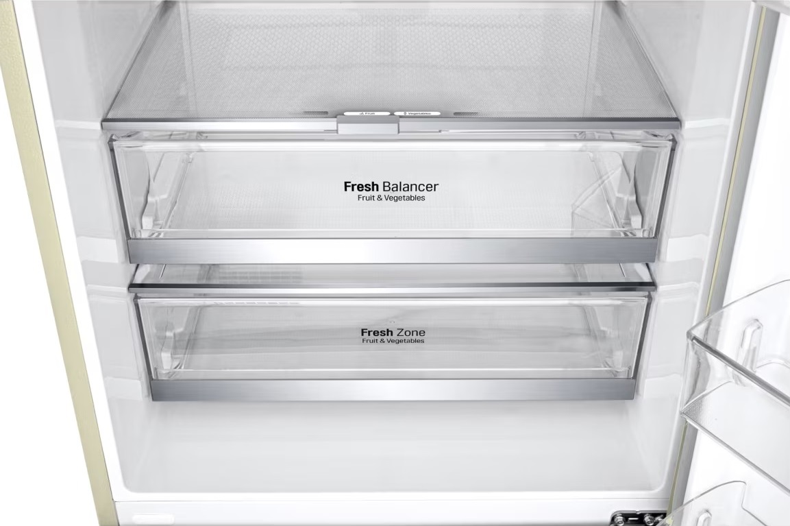 Вместительные контейнеры позволяют хранить достаточное количество овощей и фруктов. Для более длительного хранения и поддержания свежести овощей и фруктов разработаны специальные системы хранения. Среди них, например, зона свежести с увеличенной влажностью до 85% и температурой около 0 градусов. Это герметично закрывающийся ящик, часто на выдвижных роликах или направляющих, в котором имеется специальное задвижка, позволяющая регулировать влажность. Как известно, при более высокой влажности продукты с большим содержанием воды дольше остаются свежими.