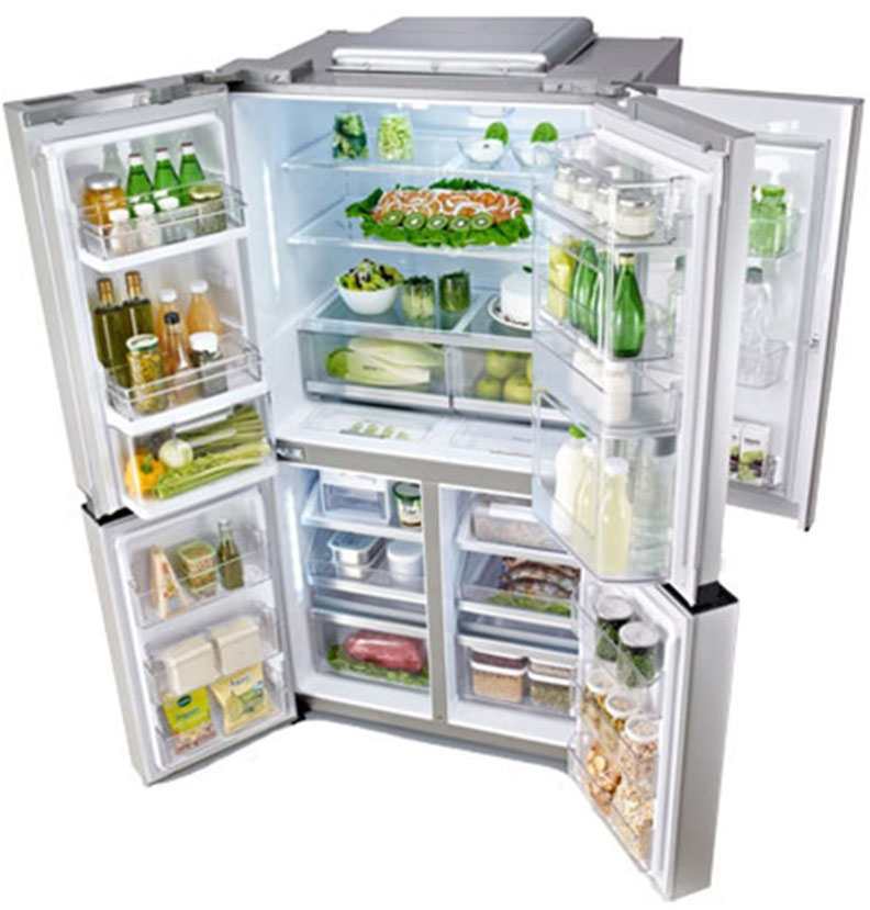 Четырех-, пяти- и шестикамерные модели включают, кроме морозильной и холодильной камер, отдельную зону свежести (иногда состоящую из сухого и влажного отсеков) и специальный отсек для ледогенератора, а в некоторых случаях еще и винное отделение.
