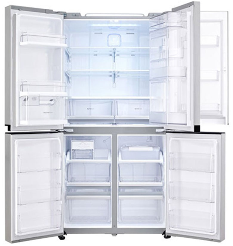 Иногда в отдельный тип выделяют так называемые холодильники с французской дверью French Door. Морозильная камера в них находится снизу, однако такие модели оснащаются четырьмя распашными дверями вместо двух: двумя сверху и двумя снизу.