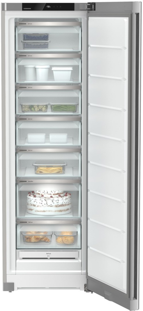 Морозильная камера высотой 185 см, которая может устанавливаться side-by-side с холодильником. Общий объем этой отдельно стоящей модели — 320 литров. В камере размещаются семь прозрачных контейнеров, имеется ящик увеличенного объема XXL Space box, поднос для замораживания и аккумуляторы холода. Ящики удобно выдвигаются на встроенных направляющих.