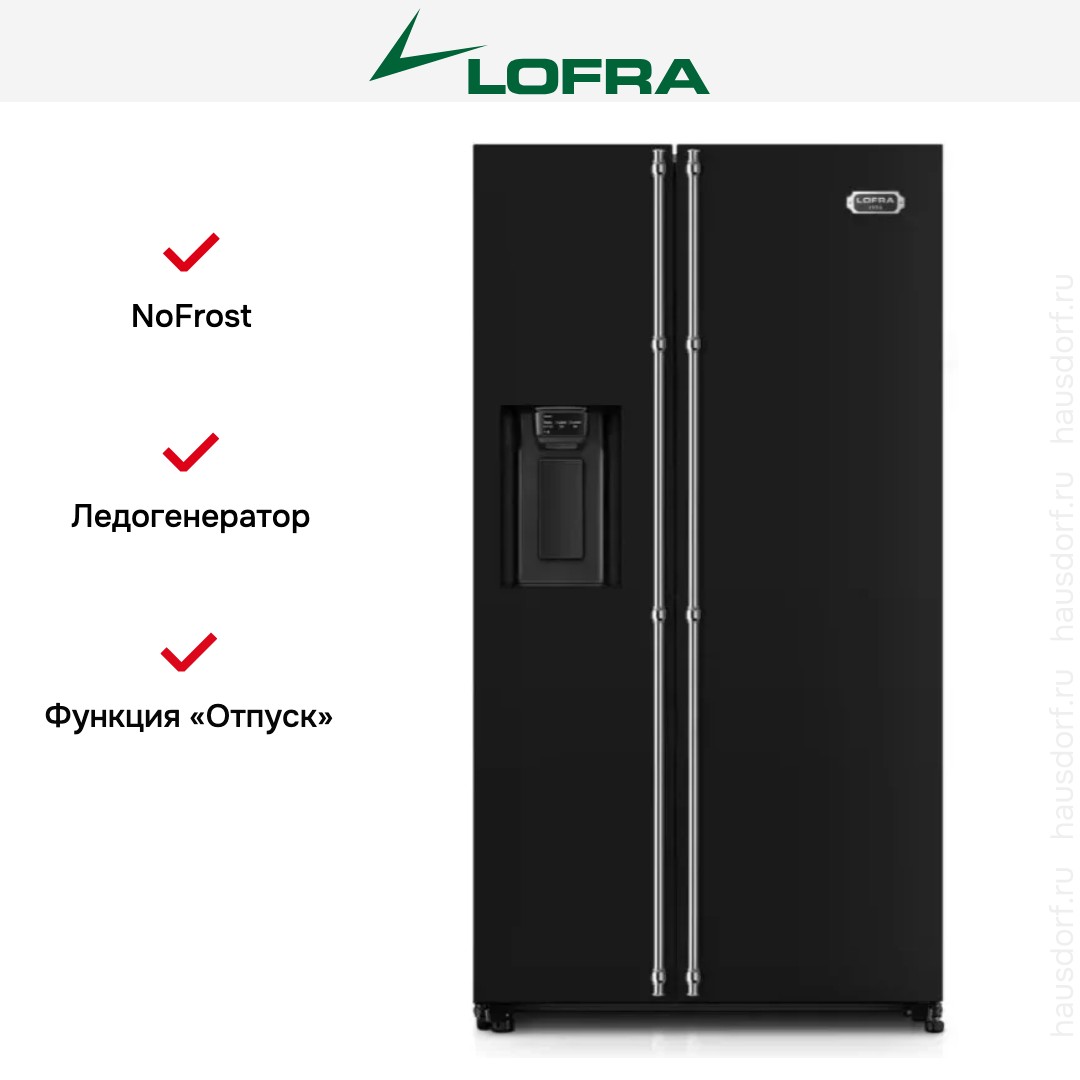 Данная модель — отдельностоящая, поэтому нужно тщательно подобрать место для ее размещения. Холодильник Side-by-Side с необычным расположением камер — сбоку друг от друга — позволяет увеличить объем продуктов для хранения. Такой вариант подходит обладателям просторной кухни, большим семьям, людям, которые запасают продукты и готовят впрок. Количество камер: 2.