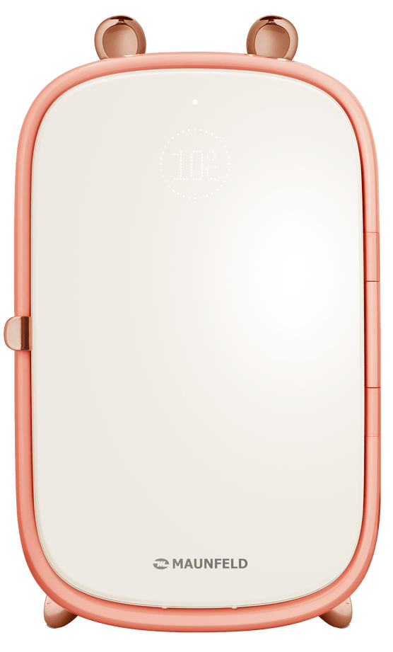 Холодильник Maunfeld MFF43PK — компактный прибор для хранения косметики и уходовых средств. Агрегат оснащен нежно‑розовым корпусом со стеклянным фронтом и небольшой внешней ручкой.