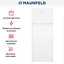 Maunfeld MFF143W — небольшой отдельно стоящий двухкамерный холодильник в корпусе белого цвета. Модель высотой 143 см и шириной 54 см с верхней морозильной камерой — хороший вариант для установки в небольшой кухне, студии, на даче. Корпус изготовлен из металла с покрытием из эмали, дверной упор расположен справа, но имеется возможность его переноса на левую сторону. Климатический класс ST свидетельствует, что прибор будет стабильно работать при температуре окружающей среды от + 18 до + 38 градусов. Высокий класс энергопотребления A+ гарантирует малый расход электроэнергии.