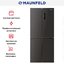 Холодильник Maunfeld MFF183NFSBE — отдельно стоящий двухкамерный агрегат с морозильной камерой внизу и объемом 451 л, выполненный в эффектной отделке «черная сталь». Его строгий минималистичный корпус добавляет кухне респектабельности и легко сочетается с современной мебелью. Компактные габариты 181×78.3×63 см делают прибор вместительным, но не громоздким, а четыре дверцы и дверной упор Side-by-Side обеспечивают аккуратный внешний вид и удобный доступ к отделениям.