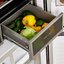 Вместительные контейнеры позволяют хранить достаточное количество овощей и фруктов. Для более длительного хранения и поддержания свежести овощей и фруктов разработаны специальные системы хранения. Среди них, например, зона свежести с увеличенной влажностью до 85% и температурой около 0 градусов. Это герметично закрывающийся ящик, часто на выдвижных роликах или направляющих, в котором имеется специальное задвижка, позволяющая регулировать влажность. Как известно, при более высокой влажности продукты с большим содержанием воды дольше остаются свежими.
