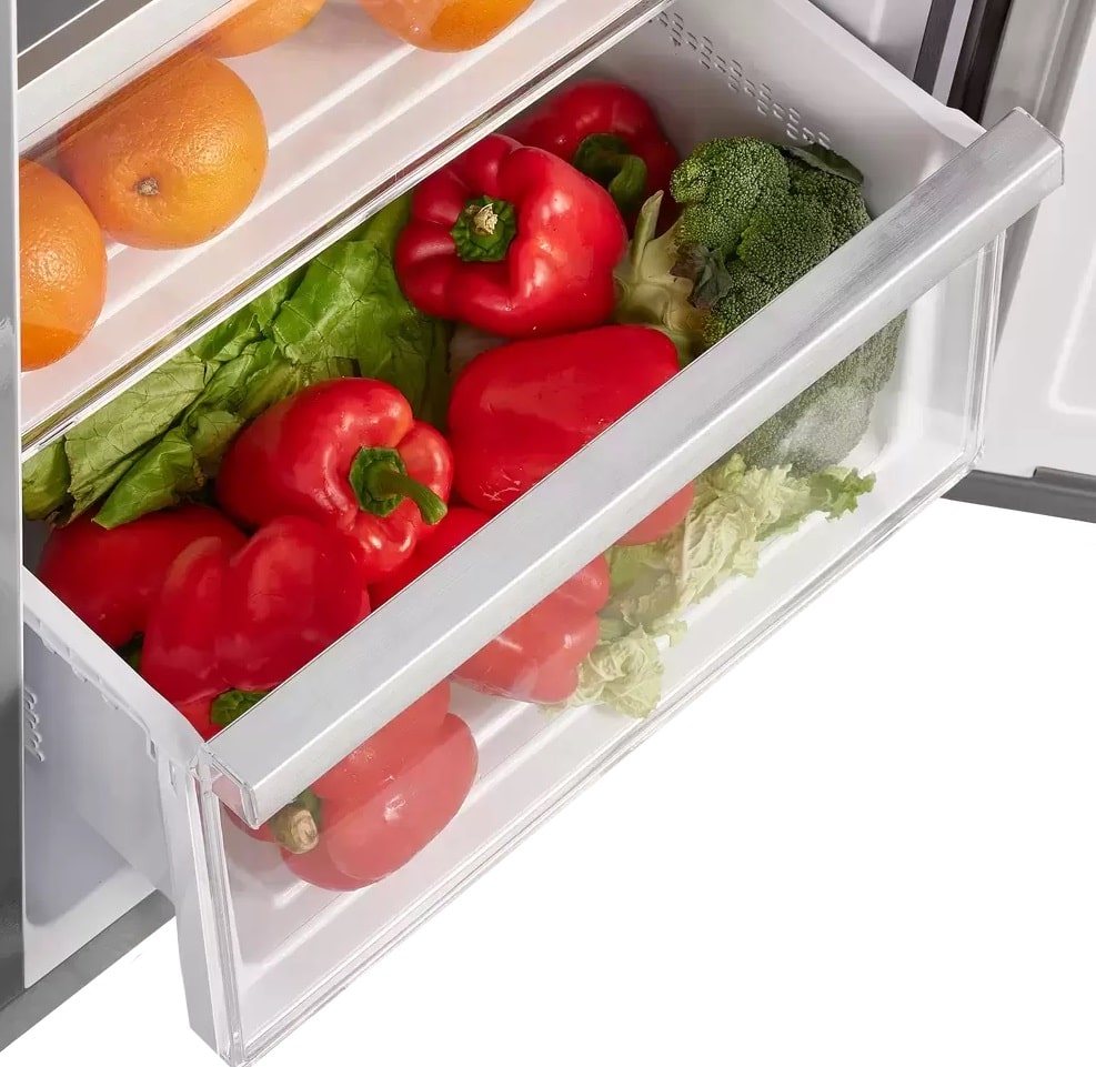 Специальная зона свежести предназначена для правильного и более длительного хранения овощей, фруктов, зелени. В ней поддерживается околонулевая температура, поэтому продукты не перемораживаются и не пересыхают.