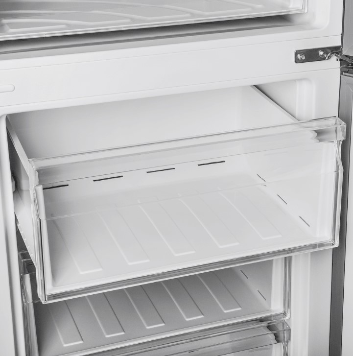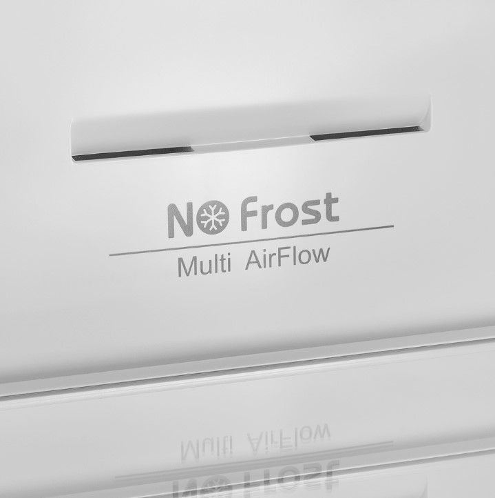 No Frost (Total No Frost, Frost Free): вентилятор обеспечивает циркуляцию охлажденного воздуха, благодаря чему лед не нарастает на стенке, а концентрируется только на скрытом внутри холодильника испарителе. Талая вода собирается в специальной емкости и испаряется. Такой холодильник не нужно размораживать – это экономит время и позволяет не останавливать прибор. Благодаря этим плюсам в современных моделях No Frost – самая распространенная система.