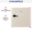 Холодильник Maunfeld MFF50RBG сочетает миниатюрные габариты и аккуратный бежевый цвет, что делает его заметным и одновременно нейтральным элементом интерьера. Его компактность выражается в размерах 49.5×47×44.5 см, поэтому устройство легко поместится в небольшой кухне, офисе или комнате общежития. Однодверный корпус с дверным упором справа выглядит лаконично и не перегружен декоративными элементами. Верхняя морозильная камера экономит внутреннее пространство и обеспечивает быстрый доступ к замороженным продуктам.