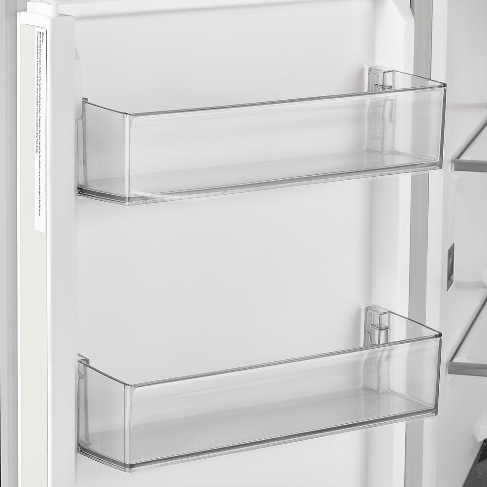 Внутреннее пространство организовано практично: три закалённые стеклянные полки в холодильной части, семь полок на дверце и зона свежести для овощей и мяса позволяют упорядочить продукты по назначению. Морозильная часть на 178 л справится с крупными закупками, а производительность замораживания 8,5 кг/сутки пригодится при быстрой заморозке блюд. No Frost в обеих камерах исключает образование инея, экономит время на обслуживании и поддерживает равномерную температуру.