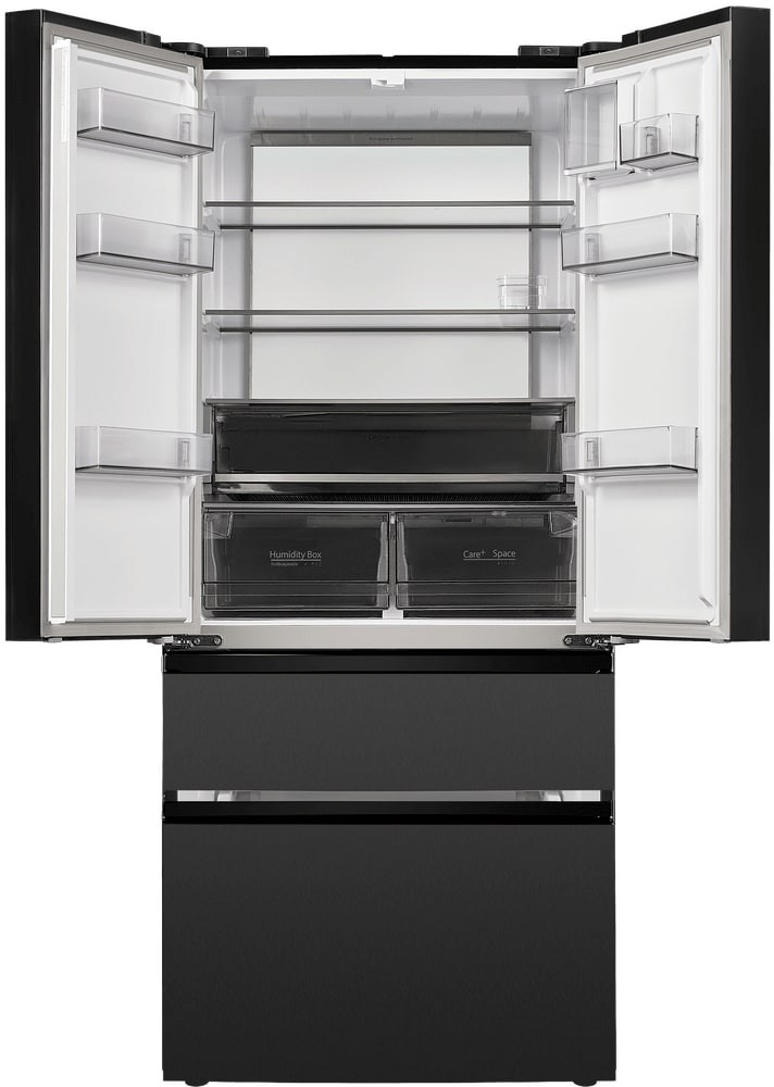 Холодильники с так называемой французской дверью или French Door также имеют распашные двери, но за ними находится не две, а одна камера. Эти двери занимают не всю высоту холодильника, а только ее часть. В нижней части подобных холодильников могут находиться либо еще две распашные двери, либо выдвижные морозильные ящики.