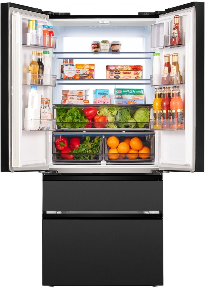 Иногда в отдельный тип выделяют так называемые холодильники с французской дверью French Door. Морозильная камера в них находится снизу, однако такие модели оснащаются четырьмя распашными дверями вместо двух: двумя сверху и двумя снизу.