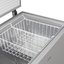 Внутренняя камера морозильного ларя, как правило, не содержит полок, ящиков и других подобных разделителей — это большой цельный отсек, в котором сверху могут крепиться металлические сетчатые корзины. Такая конструкция позволяет максимально увеличить вместительность устройства.