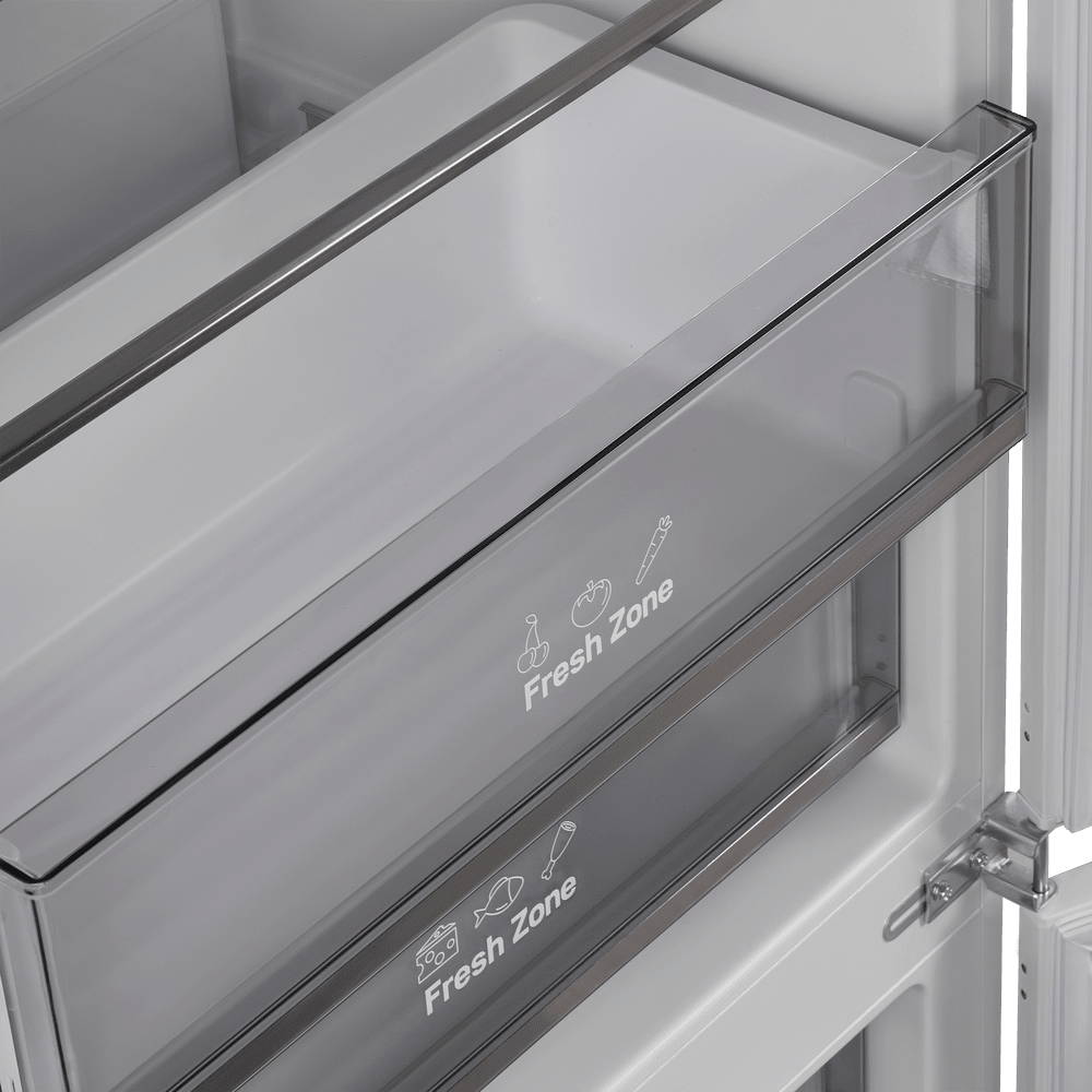 Трехкамерные модели выпускаются в нескольких вариантах. В некоторых случаях в качестве третьей камеры поступает так называемая зона свежести — отделение, где поддерживается температура около 0 градусов. В другом варианте подобные модели имеют морозильную камеру, состоящую из двух выдвижных ящиков.