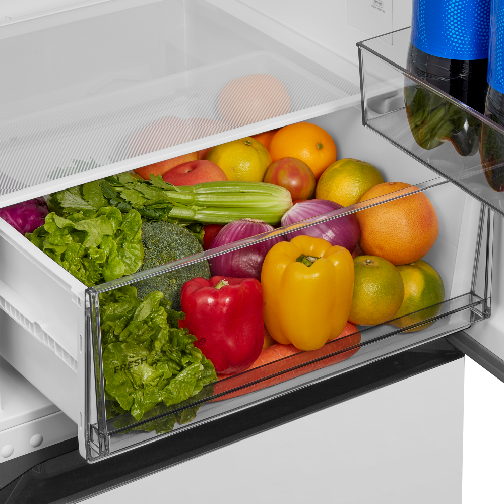 Специальная зона свежести предназначена для правильного и более длительного хранения овощей, фруктов, зелени. В ней поддерживается околонулевая температура, поэтому продукты не перемораживаются и не пересыхают. Система охлаждения этого холодильника — циркуляционная .