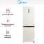 Холодильник Midea MDRB471MGF33O — отдельно стоящий двухкамерный агрегат с нижним расположением морозильной камеры и элегантным беже-вым оформлением корпуса. Он имеет компактные по объему внешние размеры 185×59.5×66 см, что делает его удобным для размещения в кухнях разных планировок, при этом правый дверной упор следует учесть при выборе места установки. Двухдверная конструкция сохраняет строгие линии фронтальной панели, а нейтральный бежевый тон легко сочетается с различными интерьерами.