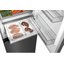 Дверной упор изначально расположен справа, однако при необходимости его можно перенастроить на противоположную сторону, что даёт свободу при планировке кухонного пространства. Внутреннее наполнение включает регулируемые стеклянные полки, вместительные ящики для свежих овощей и фруктов, а также специализированные отсеки для яиц, молочных продуктов и бутылок, позволяя гибко организовать хранение под любые нужды.