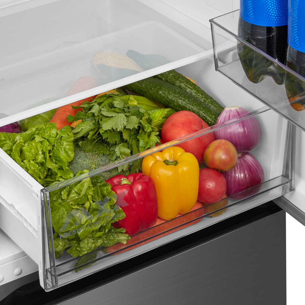 Специальная зона свежести предназначена для правильного и более длительного хранения овощей, фруктов, зелени. В ней поддерживается околонулевая температура, поэтому продукты не перемораживаются и не пересыхают. Система охлаждения этого холодильника — циркуляционная .