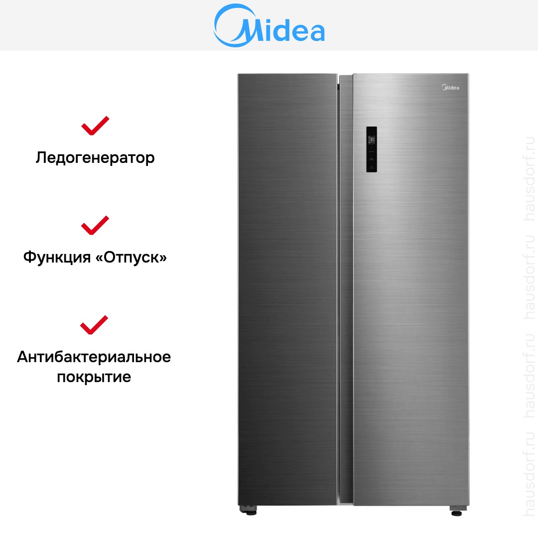 Π₯ΠΎΠ»ΠΎΠ΄ΠΈΠ»ΡΠ½ΠΈΠΊ Midea MDRS710FGE46 β ΠΎΡΠ΄Π΅Π»ΡΠ½ΠΎ ΡΡΠΎΡΡΠΈΠΉ Side-by-Side Ρ ΡΠ»Π΅Π³Π°Π½ΡΠ½ΡΠΌ ΡΠ°ΡΠ°Π΄ΠΎΠΌ ΠΈΠ· Π½Π΅ΡΠΆΠ°Π²Π΅ΡΡΠ΅ΠΉ ΡΡΠ°Π»ΠΈ ΠΈ Π³Π°Π±Π°ΡΠΈΡΠ°ΠΌΠΈ 176.5Γ89.7Γ70.6 ΡΠΌ. Π’Π°ΠΊΠΎΠΉ Π²Π½Π΅ΡΠ½ΠΈΠΉ Π²ΠΈΠ΄ Π³Π°ΡΠΌΠΎΠ½ΠΈΡΠ½ΠΎ Π²ΠΏΠΈΡΠ΅ΡΡΡ Π² ΡΠΎΠ²ΡΠ΅ΠΌΠ΅Π½Π½ΡΡ ΠΊΡΡ Π½Ρ ΠΈ Π·Π°Π΄Π°ΡΡ ΡΡΠΈΠ»ΡΠ½ΡΠΉ ΡΠΎΠ½ ΠΈΠ½ΡΠ΅ΡΡΠ΅ΡΡ. ΠΠ²ΡΡ Π΄Π²Π΅ΡΠ½Π°Ρ ΠΊΠΎΠ½ΡΡΡΡΠΊΡΠΈΡ Side-by-Side ΠΎΠ±Π΅ΡΠΏΠ΅ΡΠΈΠ²Π°Π΅Ρ ΡΠΈΠΌΠΌΠ΅ΡΡΠΈΡ ΠΈ ΡΠ΄ΠΎΠ±ΡΡΠ²ΠΎ Π΄ΠΎΡΡΡΠΏΠ° ΠΊ ΠΊΡΡΠΏΠ½ΡΠΌ ΠΏΡΠΎΠ΄ΡΠΊΡΠ°ΠΌ Π±Π΅Π· Π»ΠΈΡΠ½ΠΈΡ Π½Π°ΠΊΠ»ΠΎΠ½ΠΎΠ². ΠΠΎΡΠΏΡΡ Ρ Π°Π½ΡΠΈΠ±Π°ΠΊΡΠ΅ΡΠΈΠ°Π»ΡΠ½ΡΠΌ ΠΏΠΎΠΊΡΡΡΠΈΠ΅ΠΌ ΠΏΠΎΠ΄Π΄Π΅ΡΠΆΠΈΠ²Π°Π΅Ρ ΡΠΈΡΡΠΎΡΡ Π²Π½ΡΡΡΠ΅Π½Π½ΠΈΡ ΠΏΠΎΠ²Π΅ΡΡ Π½ΠΎΡΡΠ΅ΠΉ ΠΈ ΡΠ½ΠΈΠΆΠ°Π΅Ρ ΡΠΈΡΠΊ ΠΏΠΎΡΠ²Π»Π΅Π½ΠΈΡ Π½Π΅ΠΏΡΠΈΡΡΠ½ΡΡ Π·Π°ΠΏΠ°Ρ ΠΎΠ².