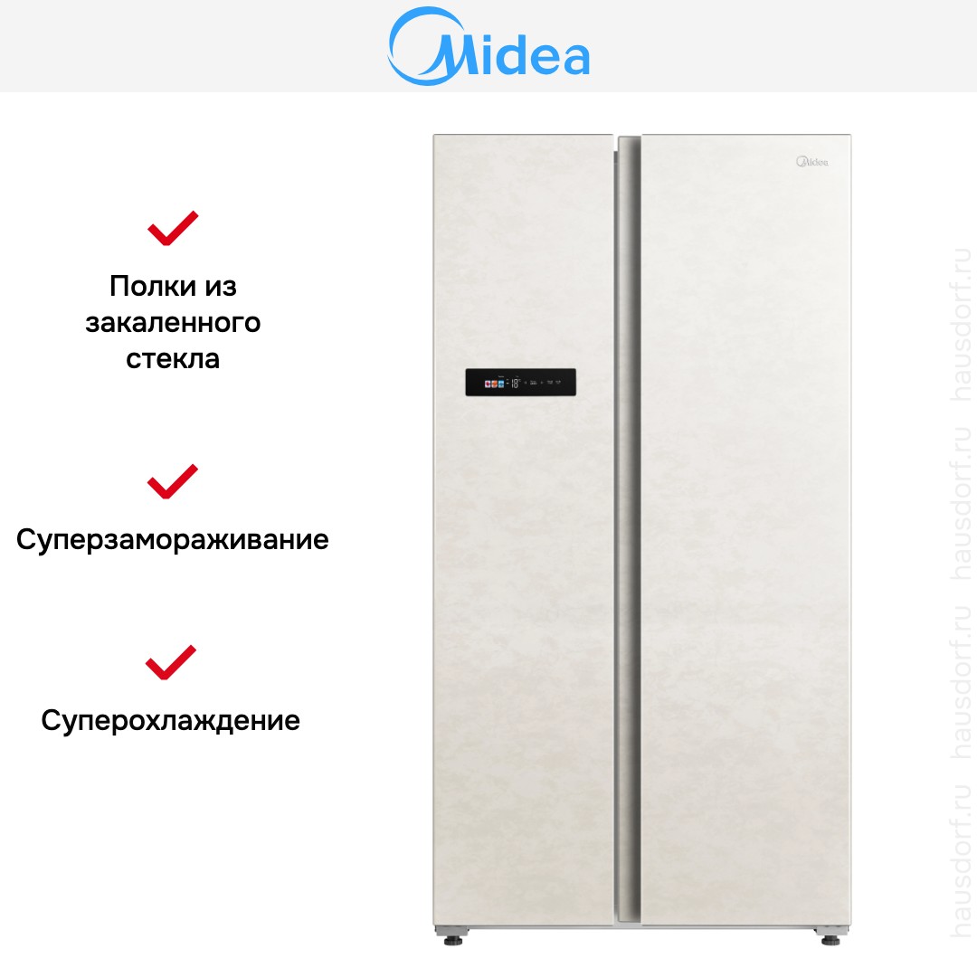 Отдельностоящий холодильник Midea MDRS791MIE33 сочетает внушительный объем и элегантный бежевый корпус, который легко впишется в интерьер современной кухни. Его габариты 177,5×91×69,8 см предлагают солидную вместимость при оптимальном размещении в помещении. Side-by-side конструкция обеспечивает удобный доступ к продуктам и визуально добавляет строгости внешнему виду. Две двери с бежевой отделкой создают аккуратный силуэт, а LED-подсветка внутри делает внутреннее пространство ясным и комфортным для поиска нужных позиций.