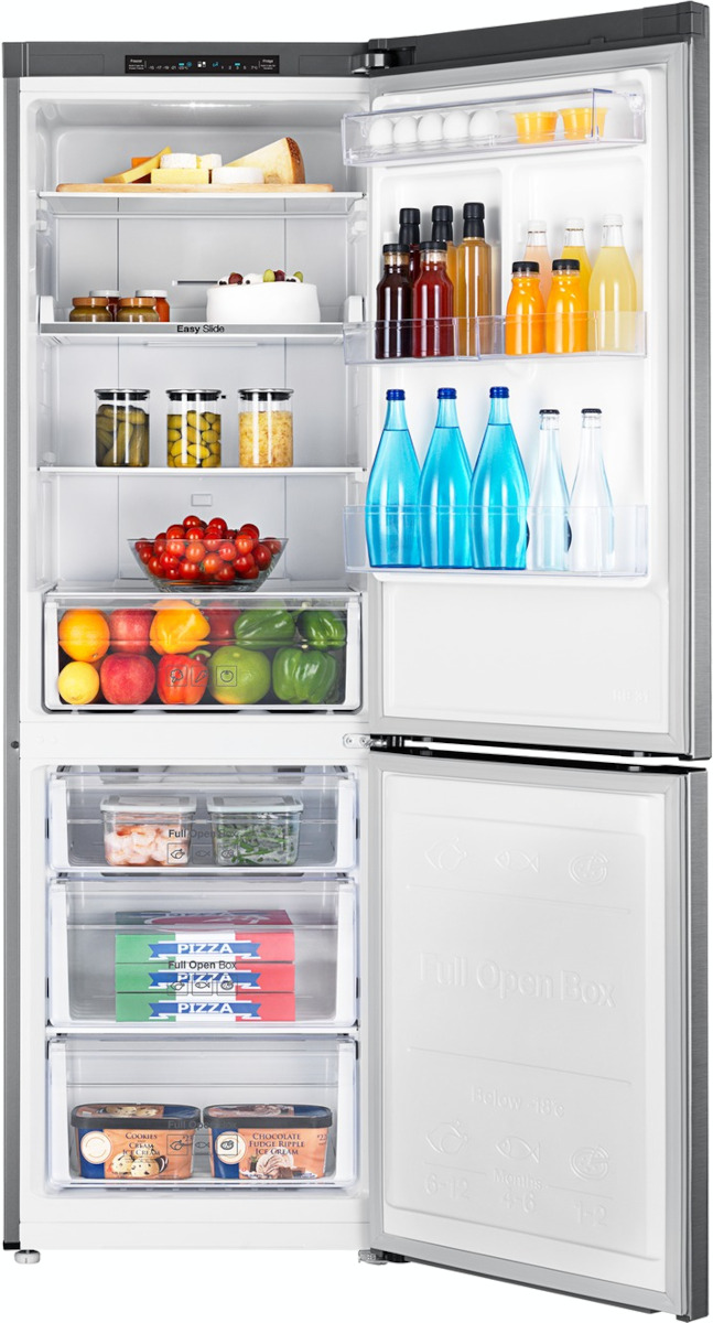 Это двухкамерный холодильник с морозильником, расположение морозильной части — снизу. Общий объём составляет 332 л, полезный 311 л. Эргономика продумана для повседневной эксплуатации: дверной упор справа и возможность перевешивания дают свободу выбора планировки, а регулируемые ножки позволяют устранить неровности пола. Внутренняя компоновка ориентирована на рациональное размещение продуктов — четыре закалённые стеклянные полки подстраиваются под разную посуду, четыре полки на дверце из пластика и отдельная подставка для яиц упрощают сортировку. Для овощей и фруктов предусмотрено два ящика плюс один большой контейнер в зоне свежести.