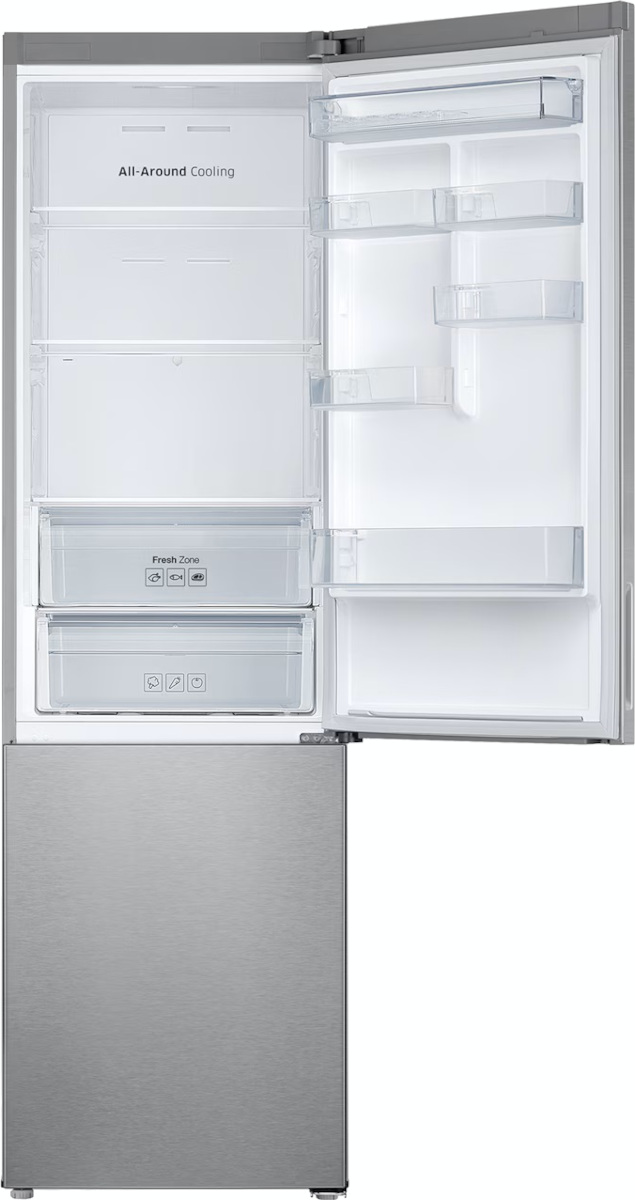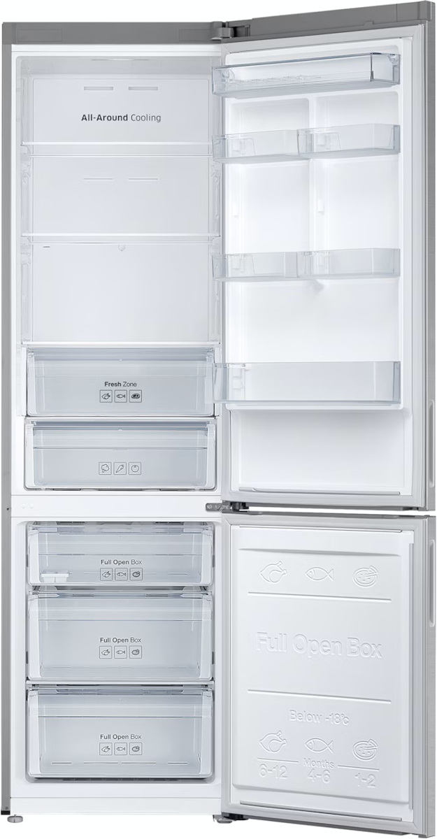 Samsung RB37A5200SA β ΠΎΡΠ΄Π΅Π»ΡΠ½ΠΎ ΡΡΠΎΡΡΠ°Ρ ΠΌΠΎΠ΄Π΅Π»Ρ Ρ ΠΌΠΎΡΠΎΠ·ΠΈΠ»ΡΠ½ΡΠΌ ΠΎΡΠ΄Π΅Π»Π΅Π½ΠΈΠ΅ΠΌ Π²Π½ΠΈΠ·Ρ, Π²ΡΠΏΠΎΠ»Π½Π΅Π½Π½Π°Ρ Π² ΡΠ΅ΡΠ΅Π±ΡΠΈΡΡΠΎΠΌ ΡΠΎΠ½Π΅ Ρ ΠΌΠ΅ΡΠ°Π»Π»ΠΈΡΠ΅ΡΠΊΠΈΠΌ ΡΠ°ΡΠ°Π΄ΠΎΠΌ ΠΈ ΡΠΊΡΡΡΠΎΠΉ ΡΡΡΠΊΠΎΠΉ. ΠΡΡΠΎΡΠ° 201 ΡΠΌ, ΡΠΈΡΠΈΠ½Π° 59.5 ΡΠΌ ΠΈ Π³Π»ΡΠ±ΠΈΠ½Π° 64.7 ΡΠΌ ΠΏΠΎΠ·Π²ΠΎΠ»ΡΡΡ ΡΠ°ΡΠΏΠΎΠ»ΠΎΠΆΠΈΡΡ ΠΏΡΠΈΠ±ΠΎΡ Ρ ΡΡΠ΅Π½Ρ ΠΈΠ»ΠΈ Π² Π½ΠΈΡΠ΅ ΠΊΡΡ Π½ΠΈ. ΠΡΠ°Π²Π°Ρ ΠΏΠ΅ΡΠ»Ρ Π΄Π²Π΅ΡΠΈ ΠΈ Π²ΠΎΠ·ΠΌΠΎΠΆΠ½ΠΎΡΡΡ ΠΏΠ΅ΡΠ΅Π²Π΅ΡΠΈΠ²Π°Π½ΠΈΡ Π΄Π°ΡΡ ΡΠ²ΠΎΠ±ΠΎΠ΄Ρ ΠΏΠ»Π°Π½ΠΈΡΠΎΠ²ΠΊΠΈ, Π° ΡΠ΅Π³ΡΠ»ΠΈΡΡΠ΅ΠΌΡΠ΅ Π½ΠΎΠΆΠΊΠΈ ΠΎΠ±Π»Π΅Π³ΡΠ°ΡΡ ΡΡΡΠ°Π½ΠΎΠ²ΠΊΡ ΠΈ Π²ΡΡΠ°Π²Π½ΠΈΠ²Π°Π½ΠΈΠ΅.