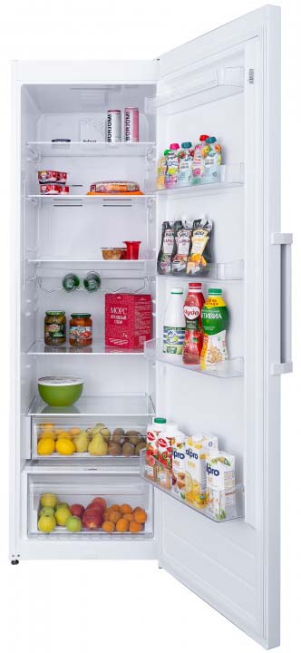 Данная модель — отдельностоящая, поэтому нужно тщательно подобрать место для ее размещения. Вы можете поменять направление открывания двери, так как упор переставляемый и ее можно перевесить на другую сторону. Такая функция открывает больше возможностей для установки. Холодильник без морозильной камеры имеет свои преимущества: больше места для хранения продуктов краткого срока годности, разнообразие полок и ящиков для овощей, фруктов, молочных изделий. Количество камер: 1.