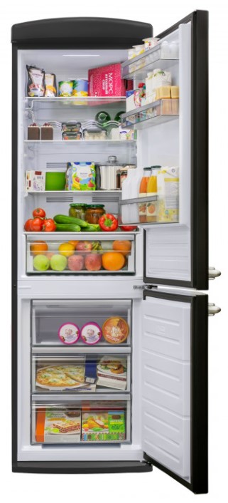Последнее время достаточно широкое распространение получили холодильники черного цвета. Подобные устройства придают кухне особый стиль, однако не рекомендуется устанавливать их в небольшом помещении, особенно если фасад изготовлен не из стекла. Кроме того, черные холодильники требуют постоянного тщательного ухода, так как на них лучше заметны загрязнения.
