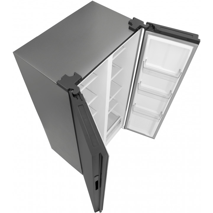 Данная модель — отдельностоящая, поэтому нужно тщательно подобрать место для ее размещения. Холодильник Side-by-Side с необычным расположением камер — сбоку друг от друга — позволяет увеличить объем продуктов для хранения. Такой вариант подходит обладателям просторной кухни, большим семьям, людям, которые запасают продукты и готовят впрок. Количество камер: 2.