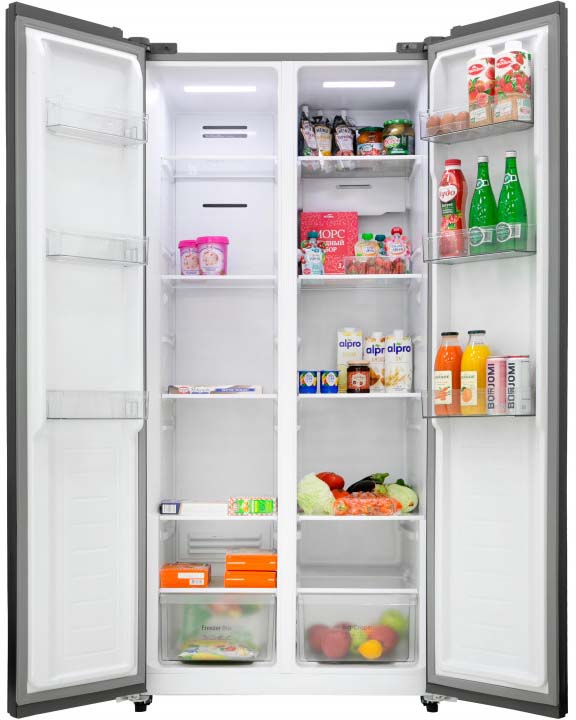 Холодильники Side-by-Side, что в переводе означает «бок-о-бок», — вместительные устройства, в которых холодильная и морозильная камеры располагаются рядом друг с другом. Они предназначаются для хранения значительного запаса продуктов и иногда называются холодильниками с американским типом компоновки, поскольку такие приборы с распашными дверями появились именно в США.