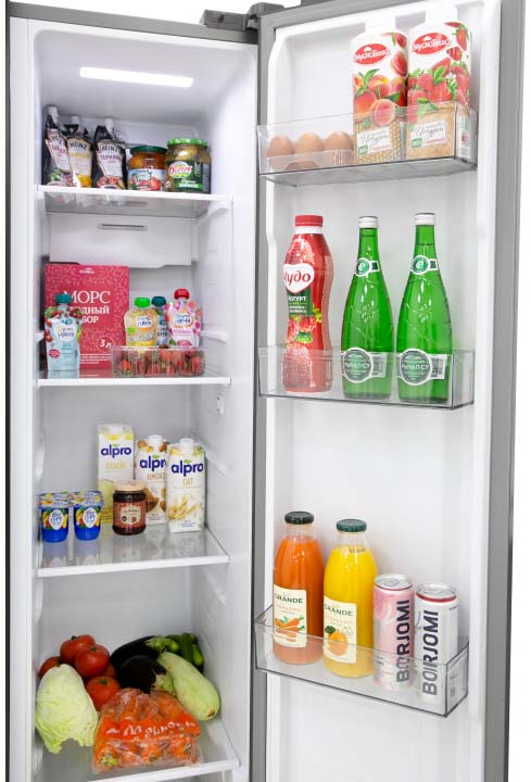 Внутреннее наполнение холодильной и морозильной камер включает многочисленные и разнообразные полки, ящики, контейнеры. Все они используются для более удобного и рационального размещения продуктов, которое обеспечивает хороший обзор содержимого холодильника и быстрый поиск.