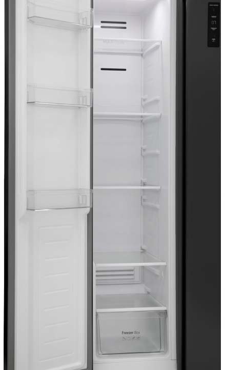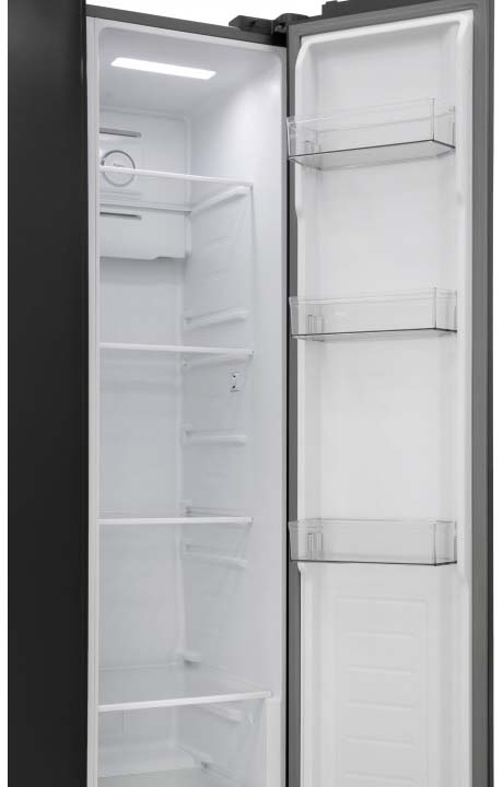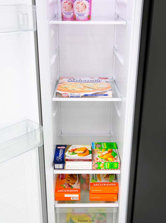 Данная модель — отдельностоящая, поэтому нужно тщательно подобрать место для ее размещения. Холодильник Side-by-Side с необычным расположением камер — сбоку друг от друга — позволяет увеличить объем продуктов для хранения. Такой вариант подходит обладателям просторной кухни, большим семьям, людям, которые запасают продукты и готовят впрок. Количество камер: 2.