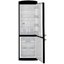 Двухкамерный холодильник глубокого черного цвета в ретро-стиле. Оба отделения вместительные, в верхнем установлено 8 полок (в том числе на дверце), есть отдельный лоток для яиц. В морозильнике три больших ящика и форма для создания кубиков льда. Система No Frost позволяет забыть о регулярном размораживании