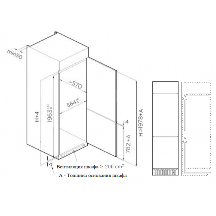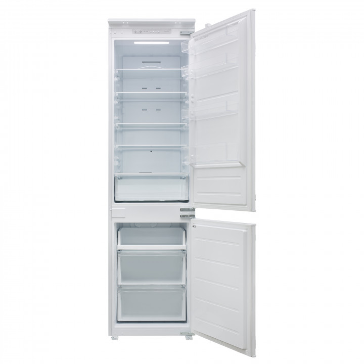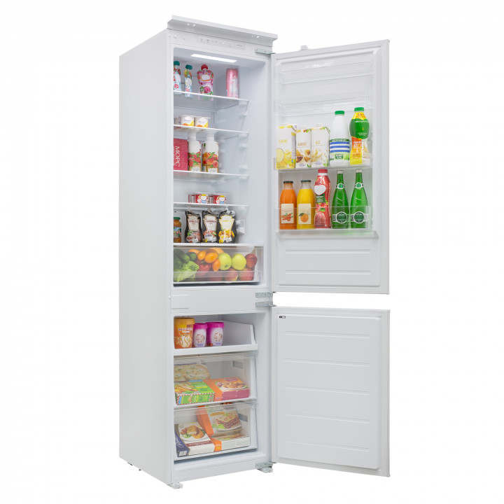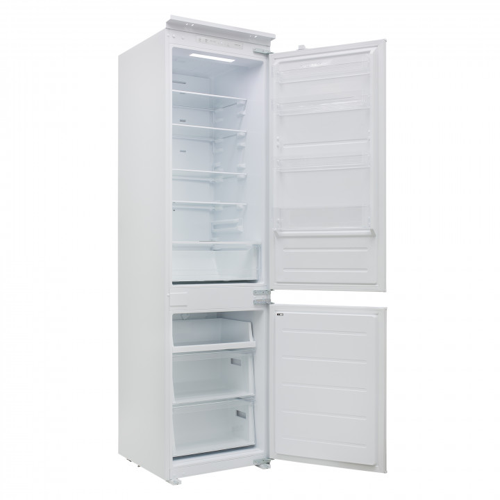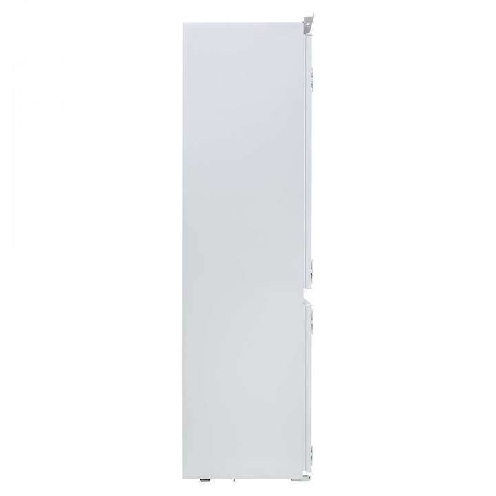 Встраиваемый прибор проще разместить в комнате, даже если общий метраж не такой уж большой. Вы можете спрятать его за декоративной панелью от мебельного фасада — советуем заранее определить нишу и заказывать панели исходя из типа крепления к двери. Способ монтажа в данной модели: скользящее крепление двери (система door sliding) Благодаря внушительным размерам, в частности высоте, она подходит большим пространствам — просторной кухне, еврогостиной. Вы можете поменять направление открывания двери, так как упор переставляемый и ее можно перевесить на другую сторону. Такая функция открывает больше возможностей для установки. Холодильник с морозильником обладает всеми опциями, которые чаще всего ищут и выбирают покупатели. Стандартная конфигурация — универсальный вариант для любой квартиры. Количество камер: 2.