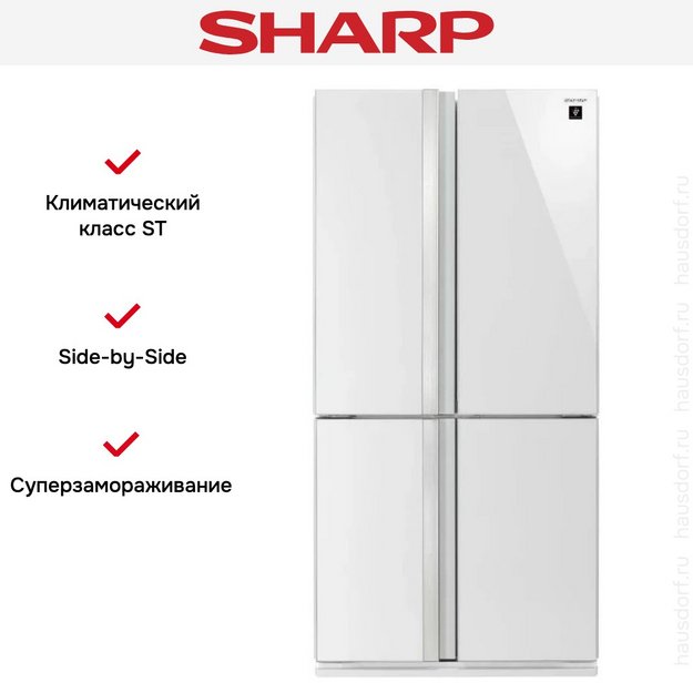 Холодильник Side by Side Sharp SJGX98PWH — замечательный выбор для всех, кто нуждается в надежном и современном приборе, чтобы обустроить кухню по последнему слову техники.