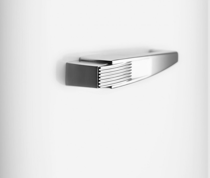 Внешняя ручка может не только послужить для открывания дверцы, но и стать интересной деталью интерьера. Особенно это касается ручек в ретро-стиле со встроенным толкателем и замком. Однако подобные элементы являются достаточно небезопасными, так как холодильник невозможно открыть изнутри. Обычные накладные дверные ручки устанавливаются на холодильник в вертикальном или горизонтальном положении. При этом особенной популярностью пользуются вертикальные ручки, идущие по всей длине камеры. Такая конструкция подойдет для людей любого роста.