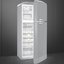 Вместительный и стильный холодильник итальянского бренда Smeg. Модель с двумя отделениями и морозильной камерой расположенной сверху.