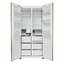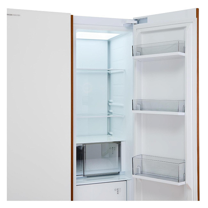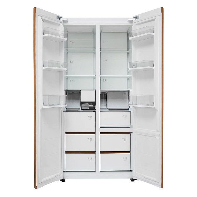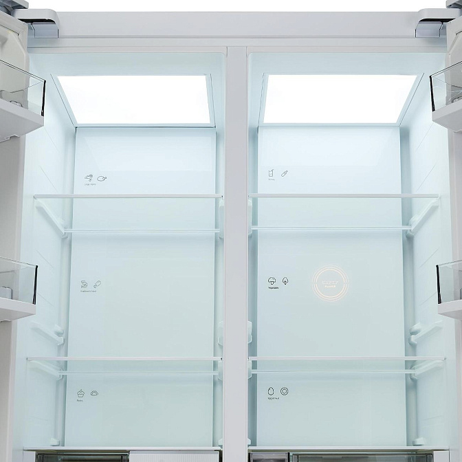 Данная модель — отдельностоящая, поэтому нужно тщательно подобрать место для ее размещения. Благодаря внушительным размерам, в частности высоте, она подходит большим пространствам — просторной кухне, еврогостиной. Холодильник Side-by-Side с необычным расположением камер — сбоку друг от друга — позволяет увеличить объем продуктов для хранения. Такой вариант подходит обладателям просторной кухни, большим семьям, людям, которые запасают продукты и готовят впрок. Количество камер: 2.